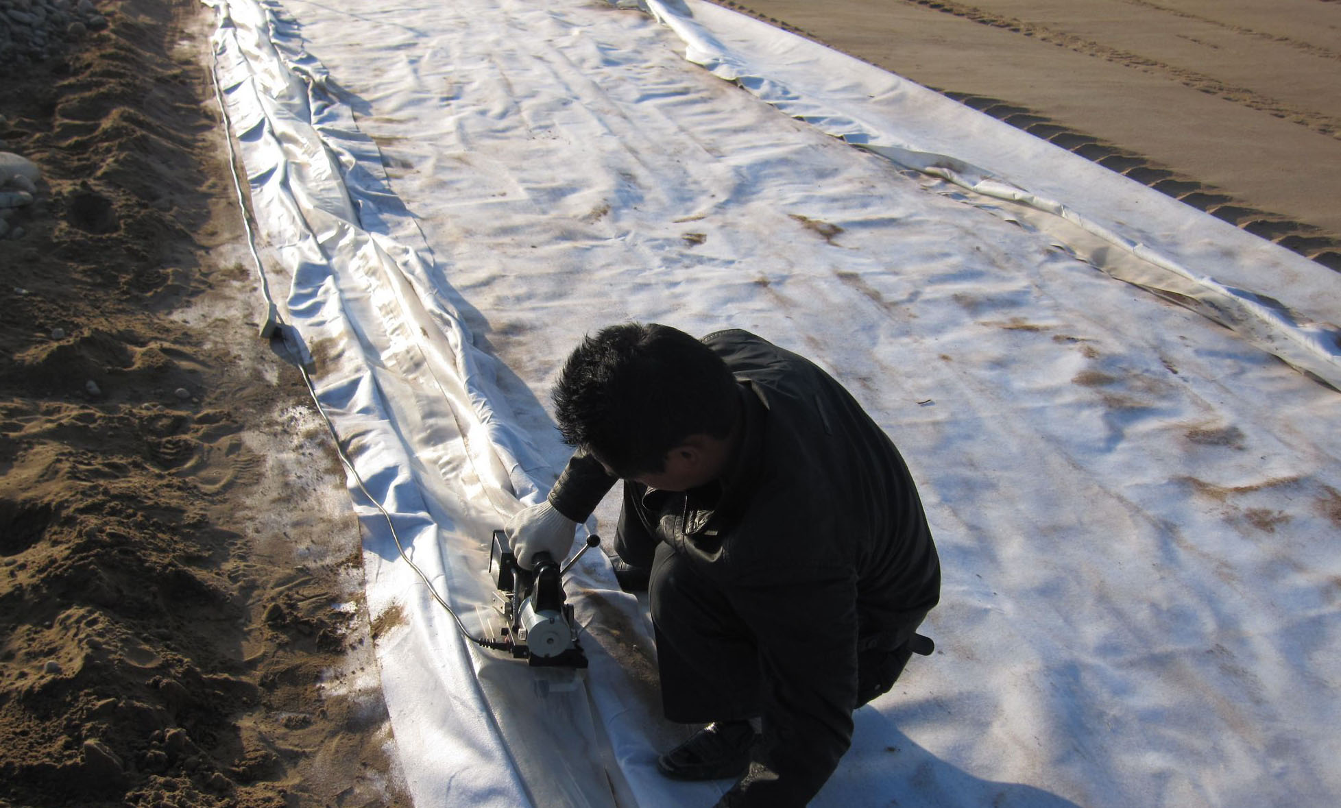 在土工膜鋪設(shè)前,基面上的雜物應(yīng)清除干凈,基面尺寸、平整度、壓實(shí)度及墊層鋪設(shè)、排滲設(shè)施、土工膜固定溝等均應(yīng)經(jīng)監(jiān)理工程師檢查簽證,未經(jīng)檢查簽證不得進(jìn)行土工膜鋪設(shè)。
