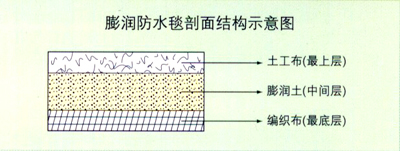 膨潤防水毯是一種專門用于人工湖泊水景、垃圾填埋場、地下車庫、樓頂花園、水池、油庫及化學品堆場等防滲漏的土工合成材料,它是由高膨脹性的鈉基膨潤土填充在特制的復合土工布和無紡布之間,用針刺法制成的膨潤土防滲墊可形成許多小的纖維空間,是膨潤土顆粒不能像一個方向流動,遇水時在墊內形成均勻高密度的膠狀防水層,有效的防止水的滲漏。